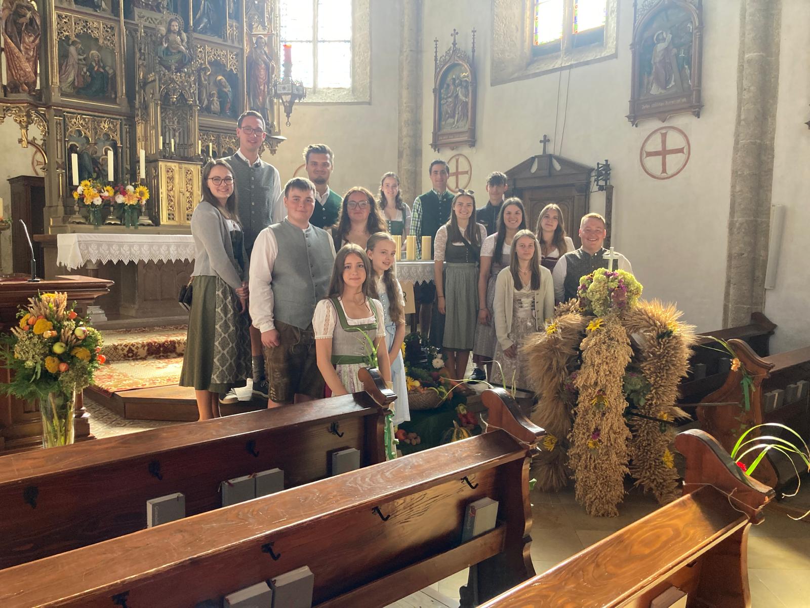 Bei beiden Festen durften unsere Burschen die Erntekrone in die Kirche tragen. Außerdem haben einige musikalische Mädels sich zu einem Chor geformt und die Messen musikalisch gestaltet.