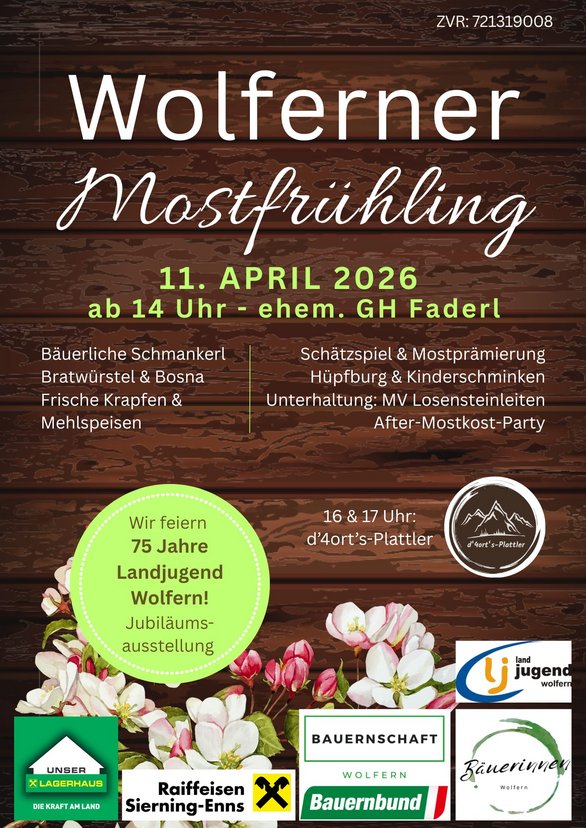 Ein besonderes Highlight ist heuer das 75-jährige Jubiläum der Landjugend Wolfern, das wir im Rahmen des Mostfrühlings gemeinsam feiern möchten.